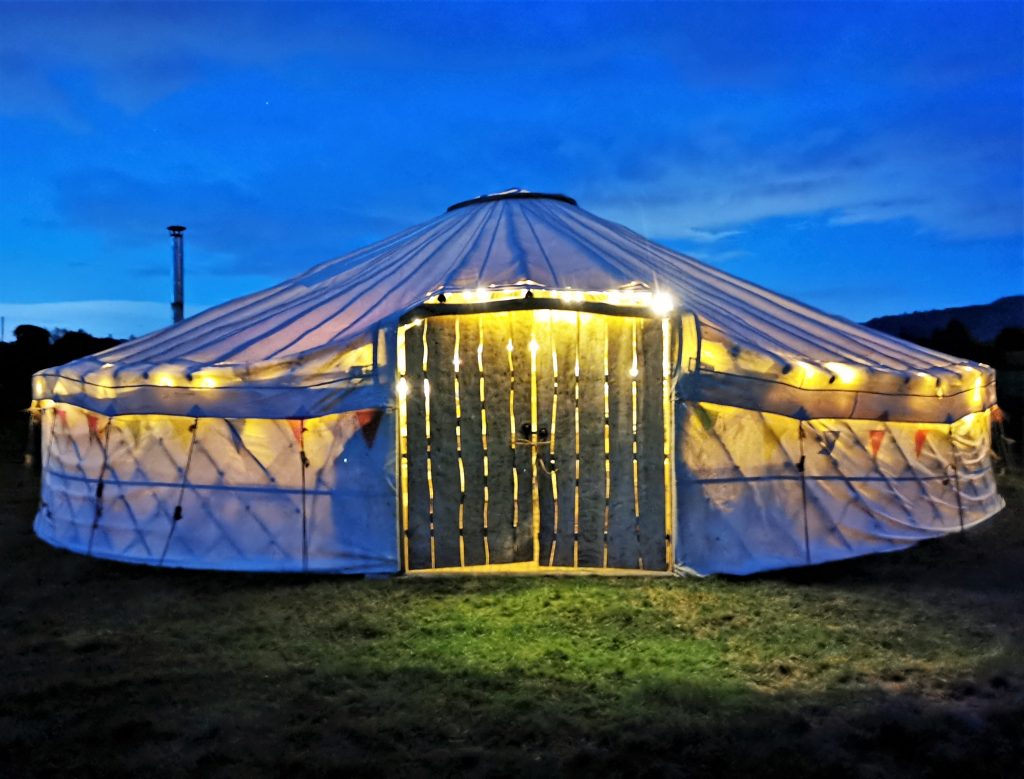 The Bukuu Yurt comes complete with stage and dance floor, and we can dress the Yurt in a colour of your choosing, and a bespoke style for your event.